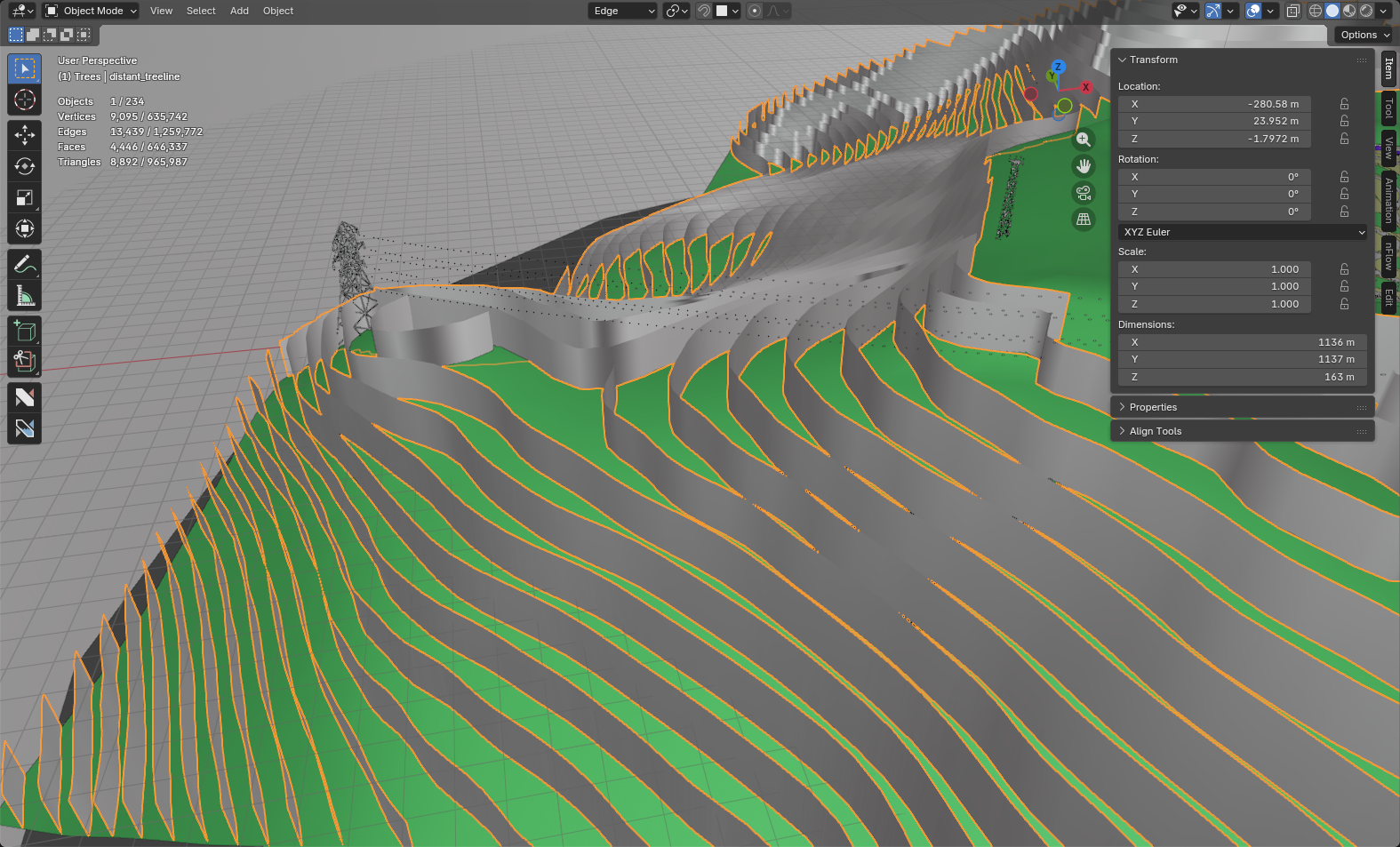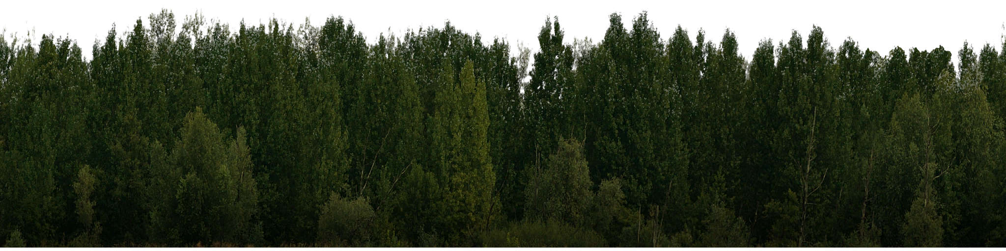 Тут всё просто. Чтобы не грузить рендеринг тысячами деревьев на дальних склонах, туда просто навешивается “лентой” плоскость с текстурой лесопосадки: